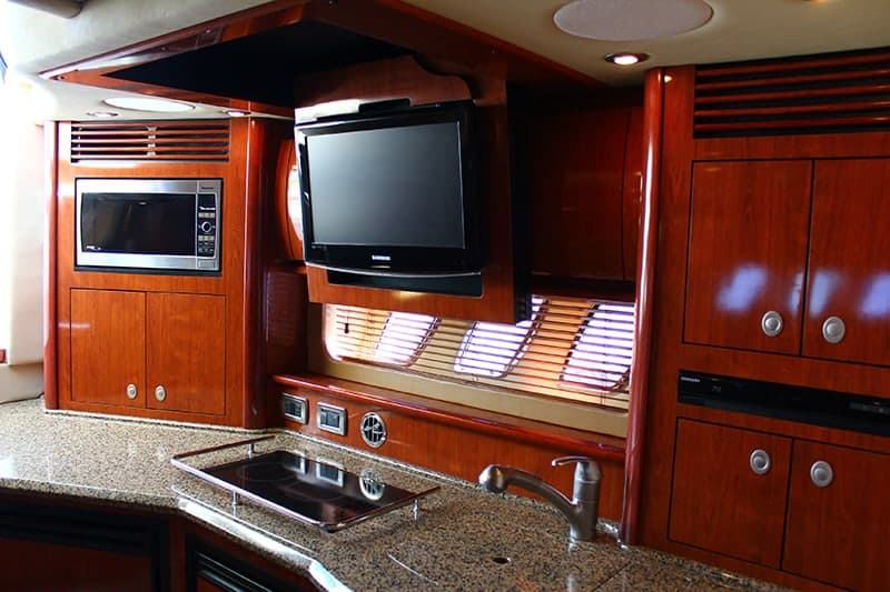 - +Flybridge: spacious flybridge with a helm station